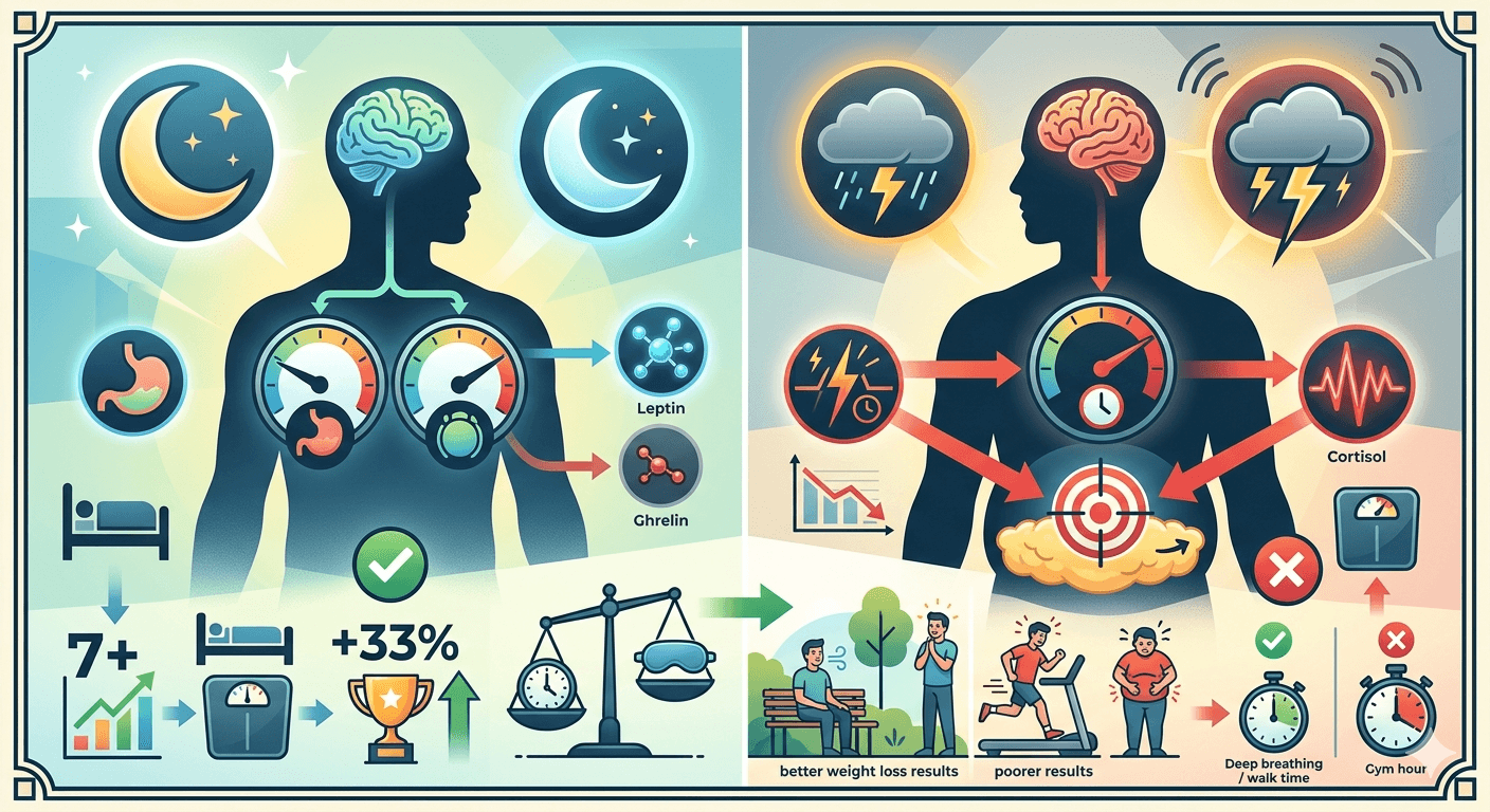 Studies have also revealed that individuals that manage to sleep over 7 hours each night have 33% higher chances of success in their weight loss process than those who sleep less. Massive contribution is also made by high stress.