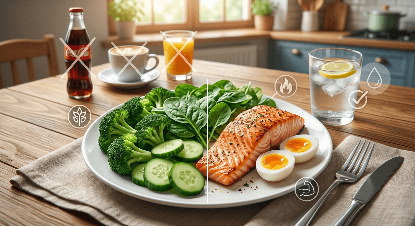Stopping your calories is one of the most convenient methods of quick fat loss. Soda, sweetened coffee beverages, even so-called healthy fruit juices contain hidden sugars that raise your insulin levels and prevent burning of fats. Replace them with plain water, herbal teas or black coffee.